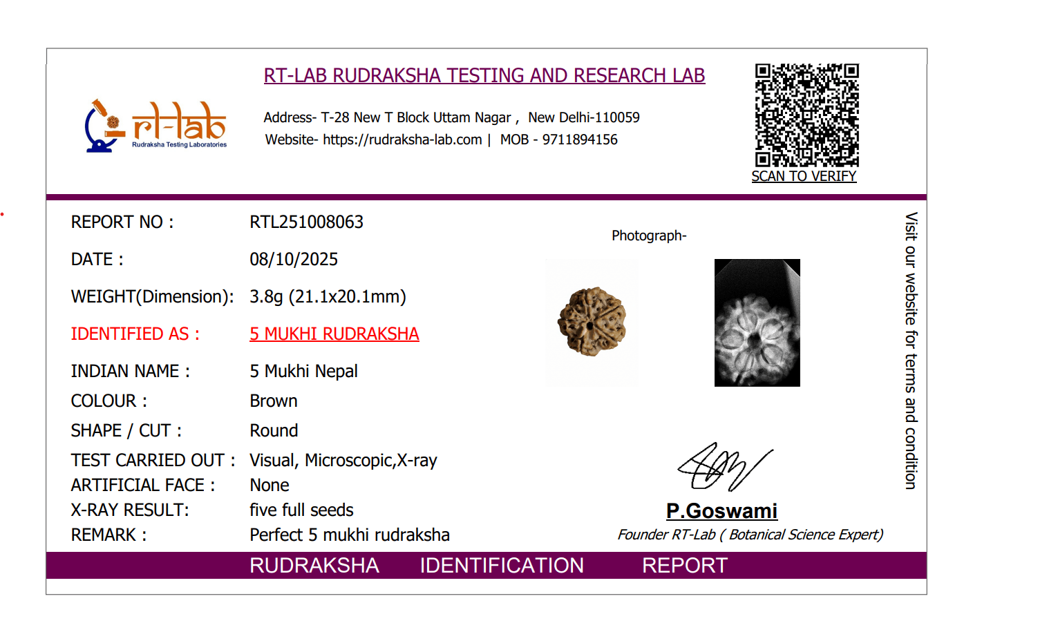 - Origin: Certified authentic Rudraksha sourced directly from Nepal or India.